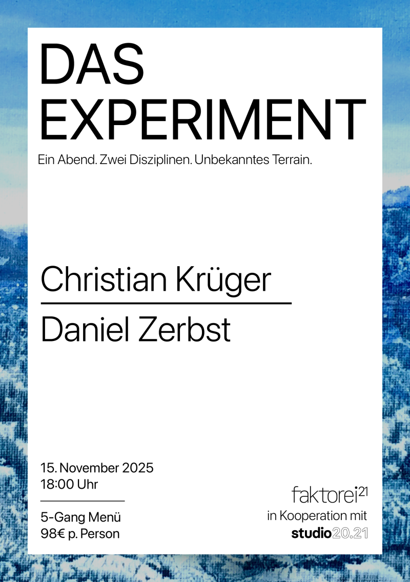 18:00 Uhr, Duisburg InnenhafenFaktorei21 & studio20.21: Das Experiment mit Daniel Zerbst